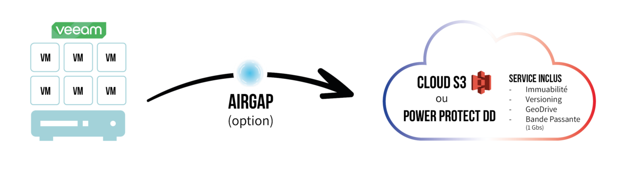 Avec l’offre Hybride, combinez le meilleur des deux mondes : une sauvegarde locale pour un accès rapide aux données et une sauvegarde externe pour une protection accrue. Idéal pour optimiser la résilience tout en limitant les risques.